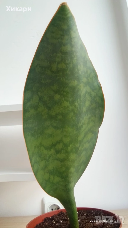 * Височина - 31 см от дъното на саксията до върха на листото.