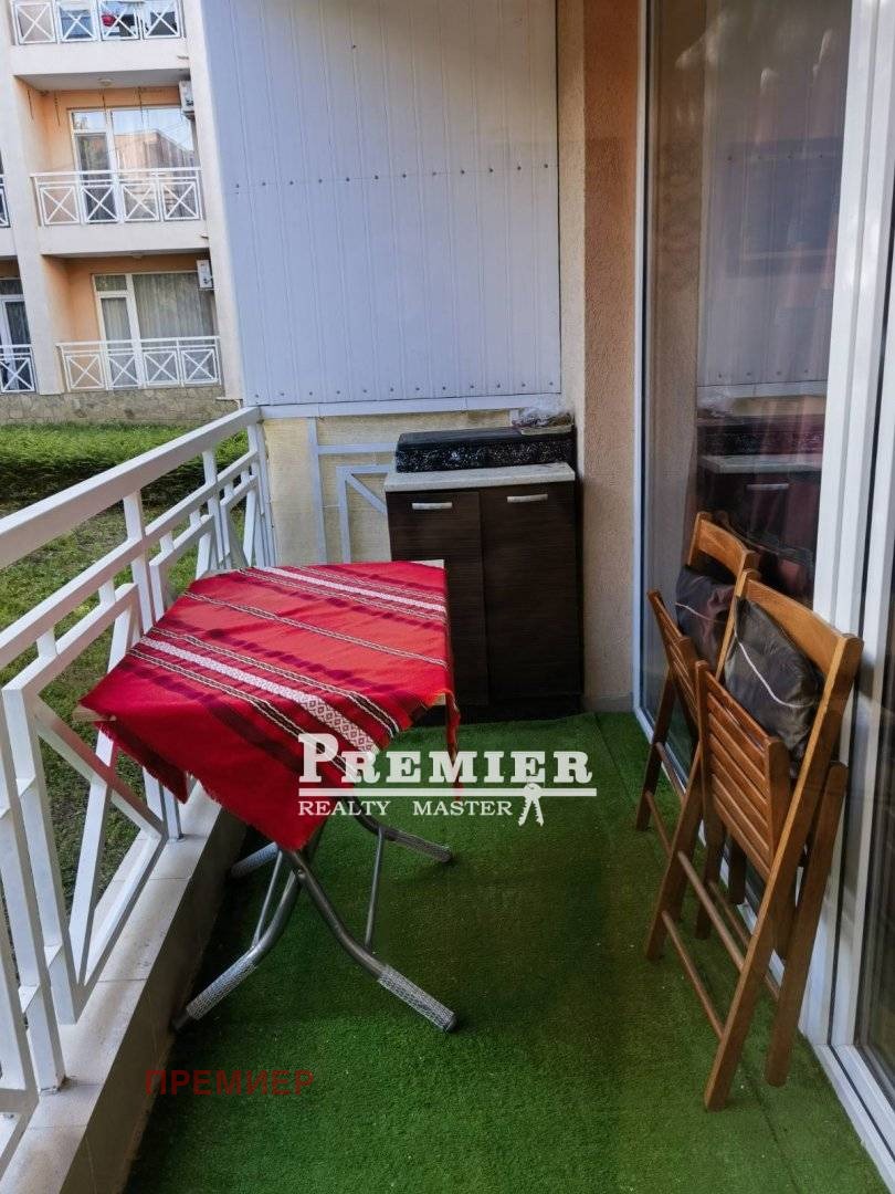 Продава се уютен двустаен апартамент в тих, охраняем комплекс, който се намира на 3 км от курорта Слънчев бряг. Апартаментът е на първи висок етаж от четириетажна сграда, напълно обзаведен и оборудван с всички необходими домакински уреди. На територията на комплекса има всички удобства и забавления от различен вид: ресторант с тераса, бар, магазин, рецепция, 5 открити басейна, 2 тенис корта, футболно, баскетболно, спортни и детски площадки и др. Апартаментът е подходящ за постоянно живеене.