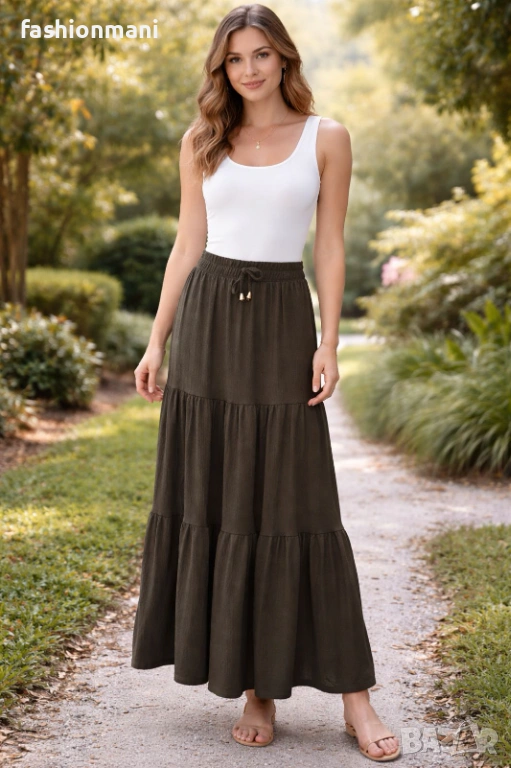 (M)- обиколка на талията с ластик от 75см, до 95см. дължина 97см. (L )- обиколка на талията с ластик от 80см, до 100см. дължина 98см. Ще го намерите във фирмения ни магазин