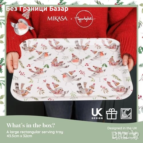 Нов Поднос за сервиране на напитки и храна 43.5x32 см коледен декор дом