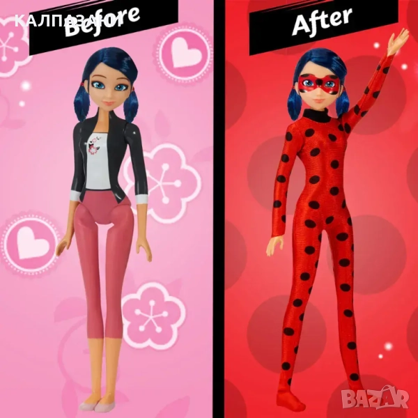 Тази кукла XL е цели 28 см. и идва с допълнителен костюм на Калинка. Преобрази Маринет в Калинката и се впуснете в приключение, за да спасите Париж. Създавай свои собствени истории и изживей вълнуващи Miraculous моменти.
