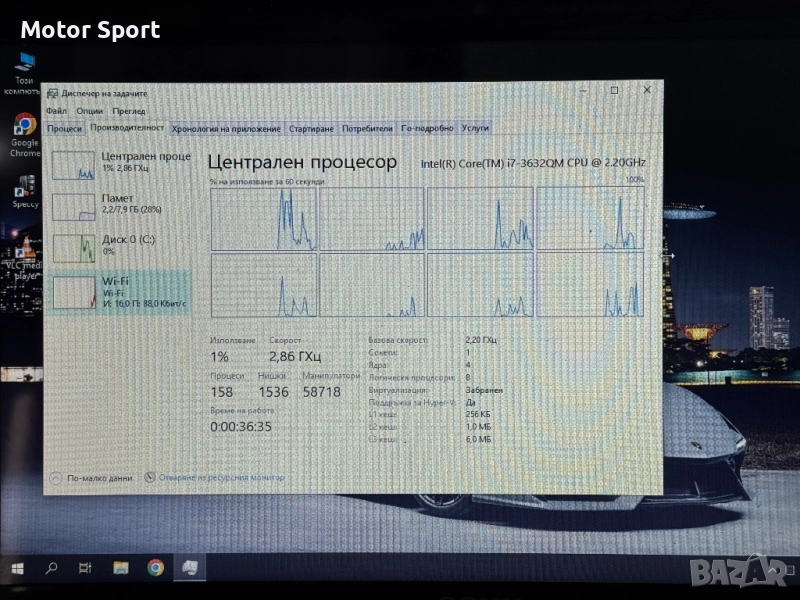 Процесор: Intel Core i7-3632QM 8ядра по 2,20GHz.
