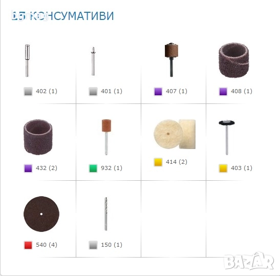 15 висококачествени консуматива включени в комплекта