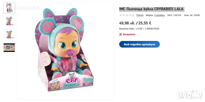 - Детска кукла Cry Babys - 28 лв.