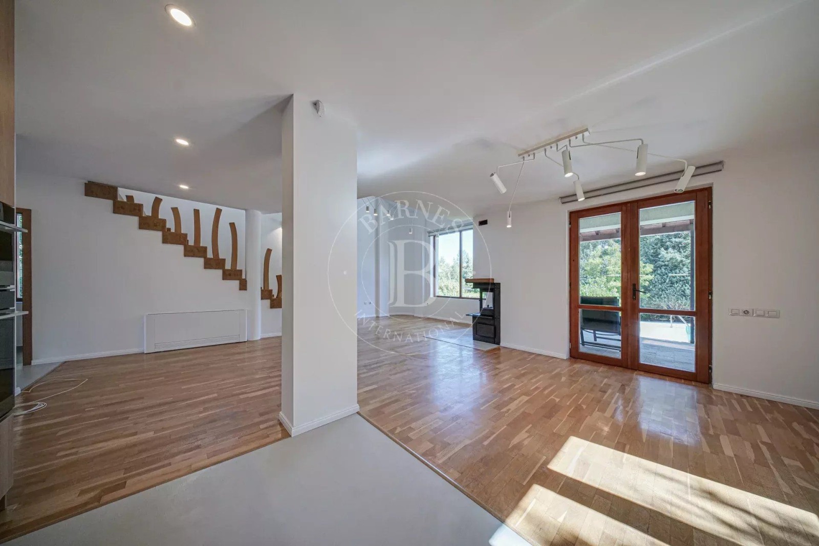• Първо ниво: просторна дневна с камина и кухненски кът, тоалетна за гости, гараж