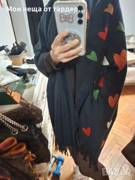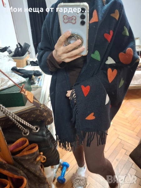 Страхотен широк Шал Benetton с сърца.Нов да подарък! → Обява 51890921