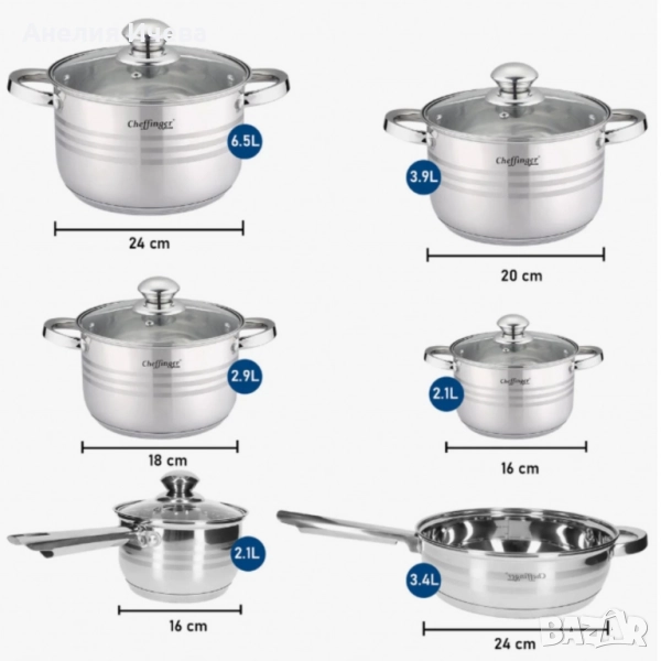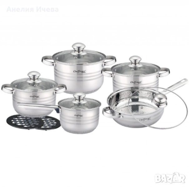 Комплект съдове за готвене Cheffinger -12части с 3слойно незалепващо покритие