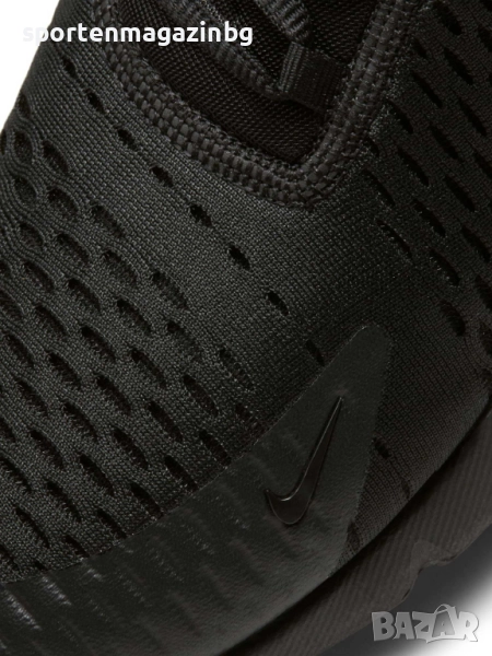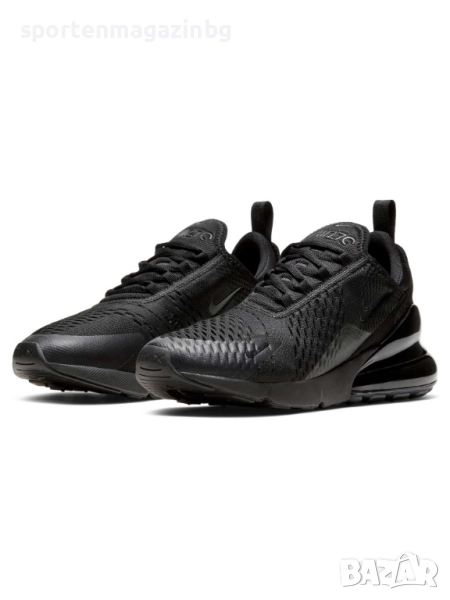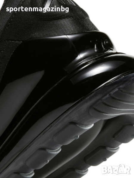 Max Air предлага специална междинна камерна подметка, която представлява затворен в специална мембрана въздух в задната част на ходилото, който поема натоварването при движение и същевременно осигурява максимална мекота и стабилност. Устройството Max Air 270 осигурява ненадминат комфорт през целия ден. Горна част от дишащата мрежа осигурява правилна вентилация на краката, което гарантира постоянно усещане за свежест и комфорт а допълнителните TPU наслагвания увеличават здравината на маратонките. Тъканата и синтетична материя в горната част осигурява леко прилягане и ефирно усещане. Допълнително подсилени в областта на петата и пръстите. Лого Nike от всички страни и надпис Air с лого в задната част. Нисък профил за по-голяма свобода при движение. Удобната текстилна кука в задната част ви помага лесно да обувате маратонките. Еластична чорапена конструкция. Вътрешната текстилна част заедно с изключително омекотената стелка осигуряват невероятна мекота и комфорт с всяка крачка. Супер омекотената междинна подметка подкрепя стъпалата при движение и намалява сътресението, придава лекота и еластичност на маратонката и осигурява правилното позициониране на краката по време на движение. Външната гумена подметка е стабилна и гъвкава, за да осигури перфектно сцепление по време на движение.
