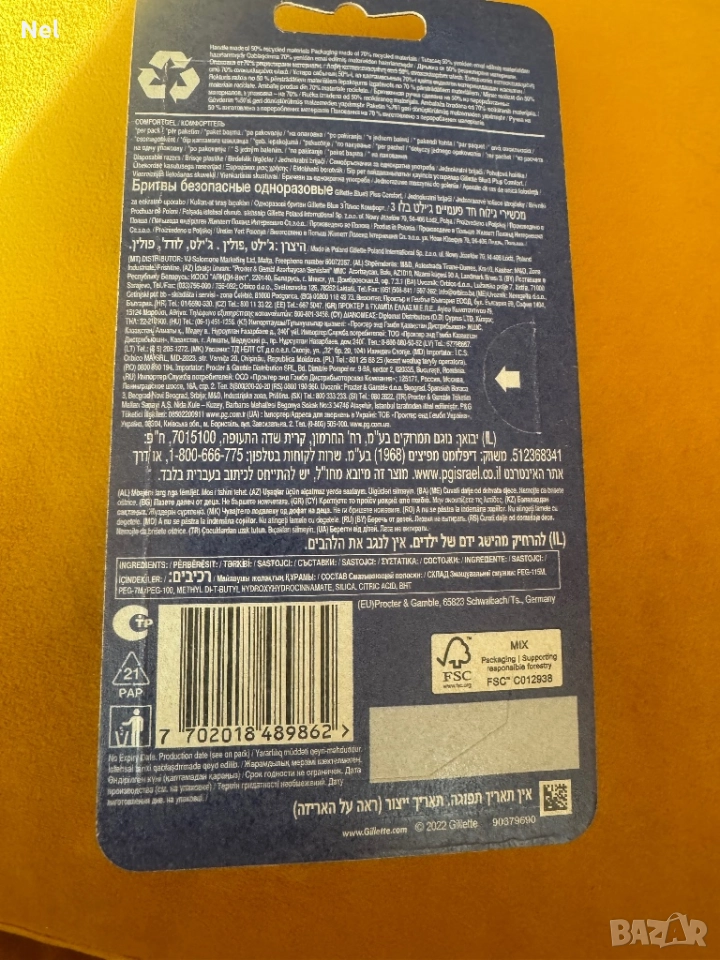 GILLETTE Blue 3 Plus Comfort Еднократна самобръсначка, 6 бр. → Обява 51891072