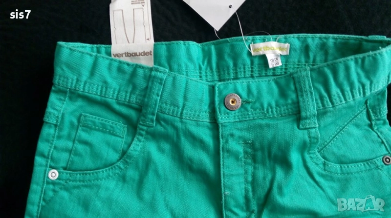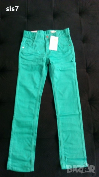 Страхотен нов панталон поръчан от Франция сайта vertbaudet.Много хубав зелен цвят,слим модел.Реални размери: талия-31 см.,ханш-37 см.,дължина 83см.,дължина на крачола от чатала-63 см.,ширина на крачола при чатала-20 см. ,дълбочина отпред-19см.