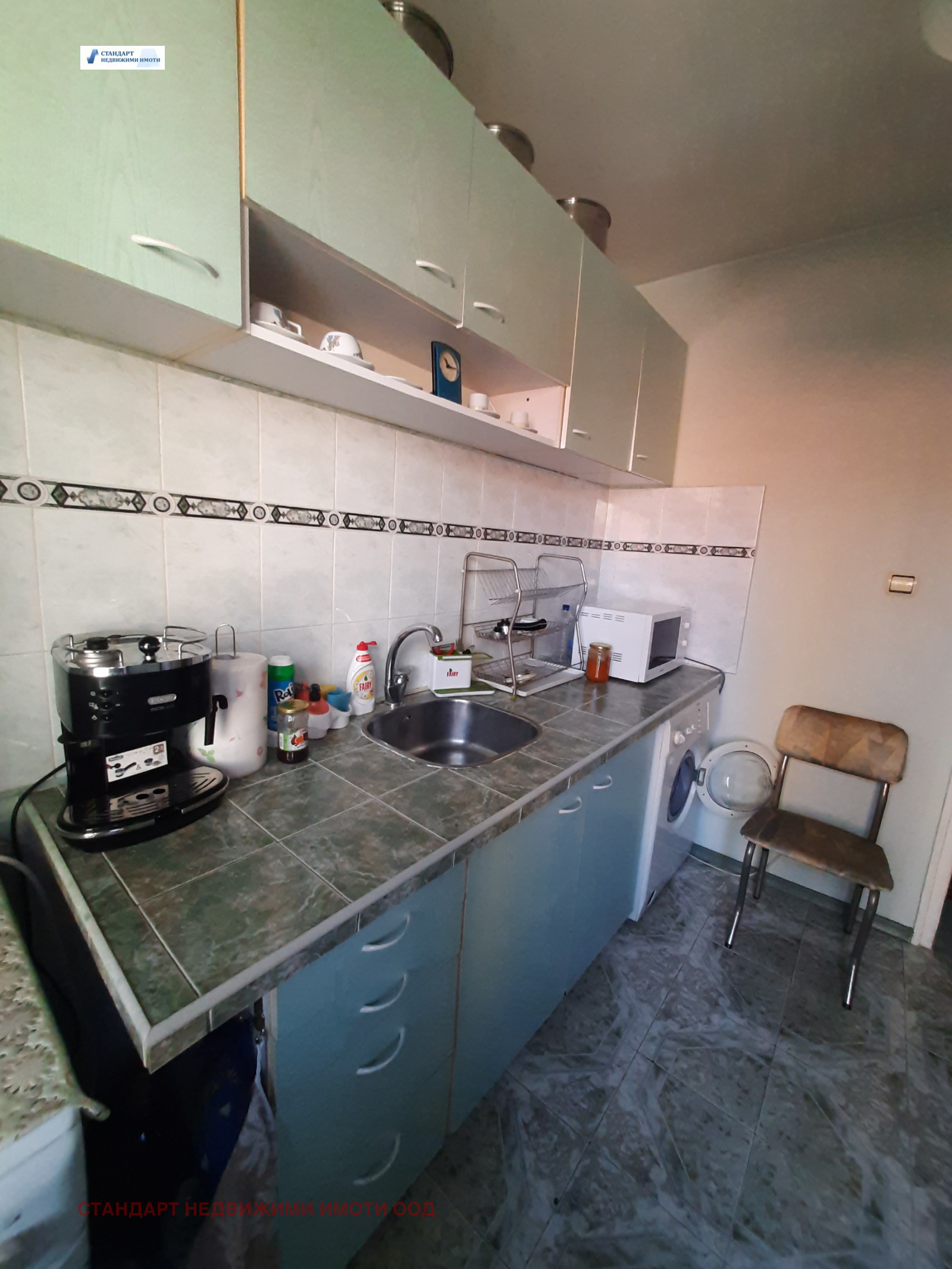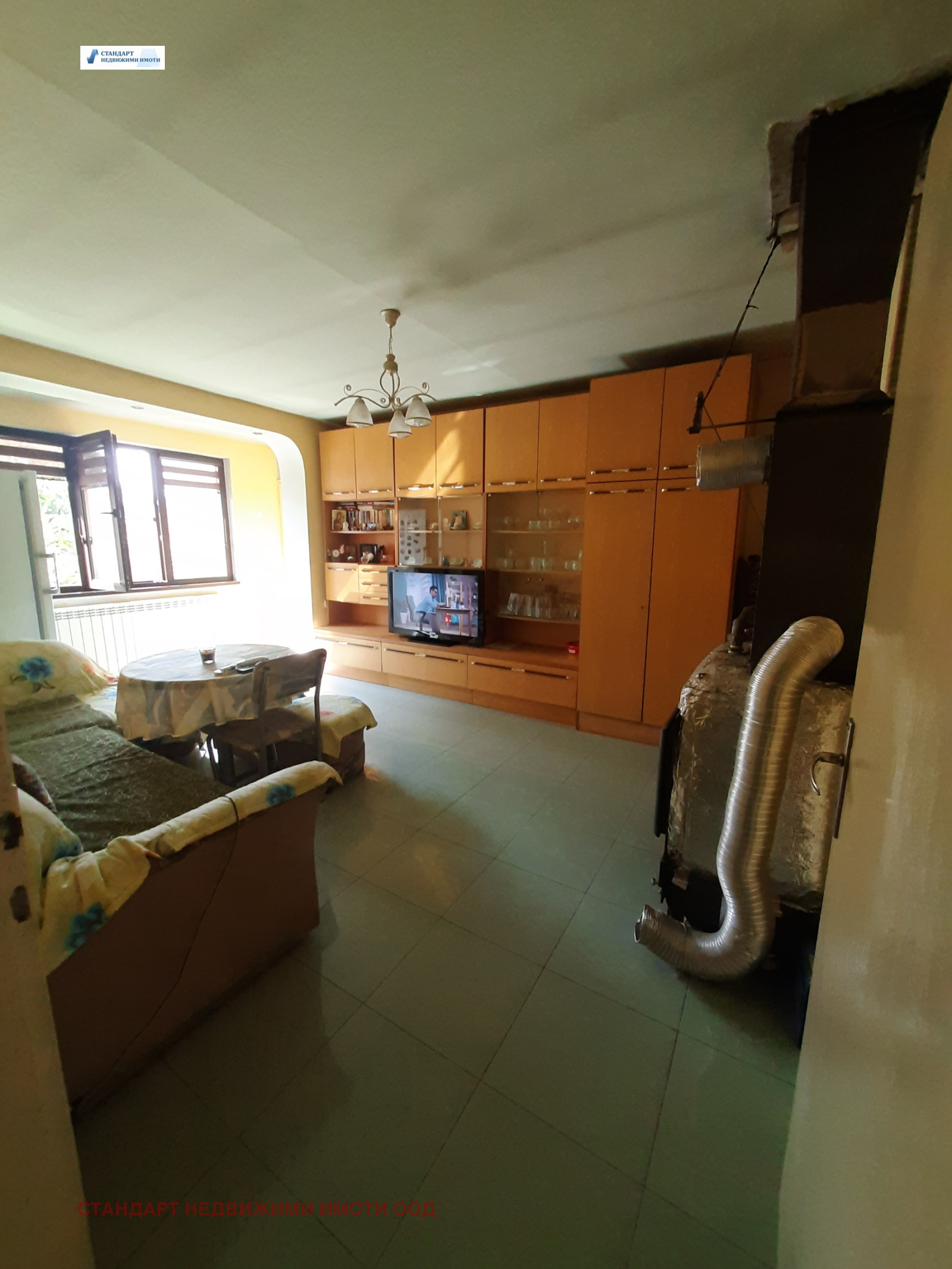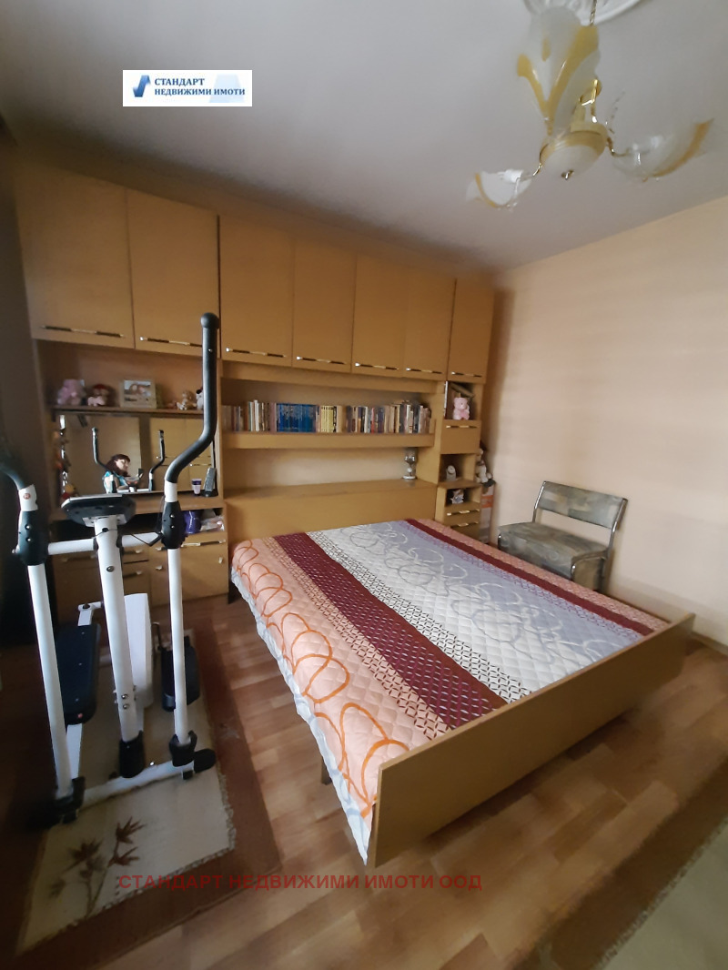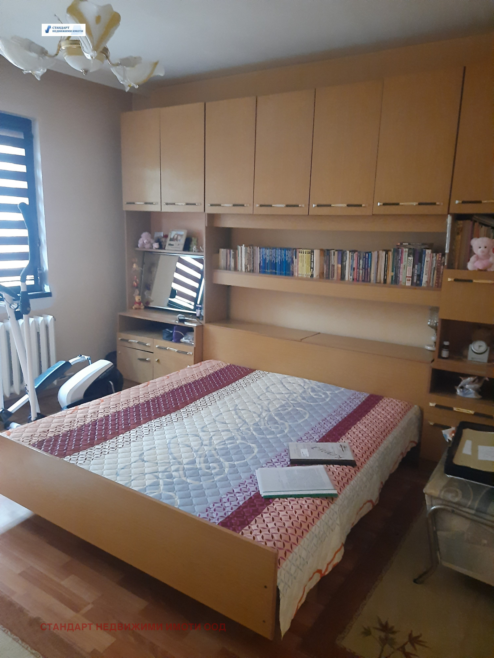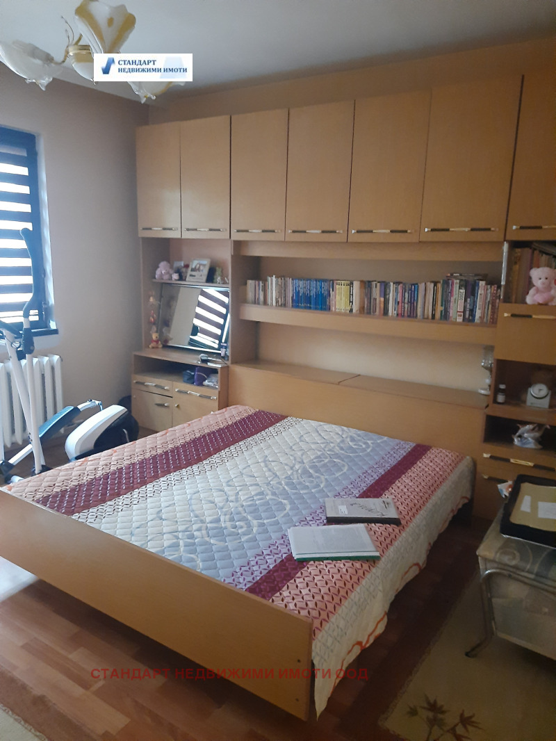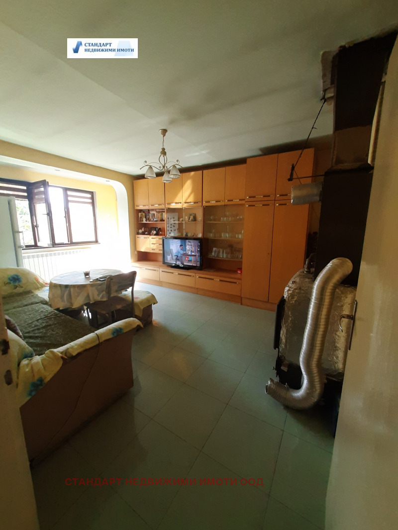Агенция Стандарт имоти продава втори етаж от двуетажна къща със самостоятелен вход. Състои се от две спални, хол, кухня и баня с тоалетна. Продава се обзаведен и в отлично състояние. Направена е външна изолация, дограмата е сменена, покрива е в отлично състояние, има локално парно с камина и радиатори в стаите и климатик в едната спалня. Стълбището е с гранитни стъпала. Като изложение е юг, запад и само кухнята е на север. Улицата е малка, много тиха и съвсем близо до много магазини, спирки, училище и детска градина. Намира се до второто колело на Панаира. Към имота има изба, 1/2 от общите части на сградата, 1/4 от 320кв.м. парцел и гараж.