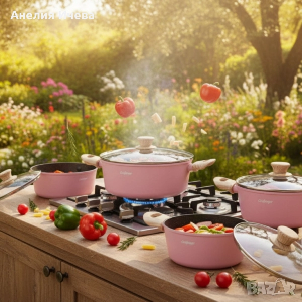 Cheffinger -розов комплект тенджери с мраморно покритие