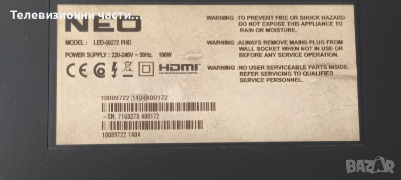 NEO LED-50272 FHD със счупен екран.Панел VES500UNDC-2D-N01.Матрица V500HJ1-PE8 Rev.C1