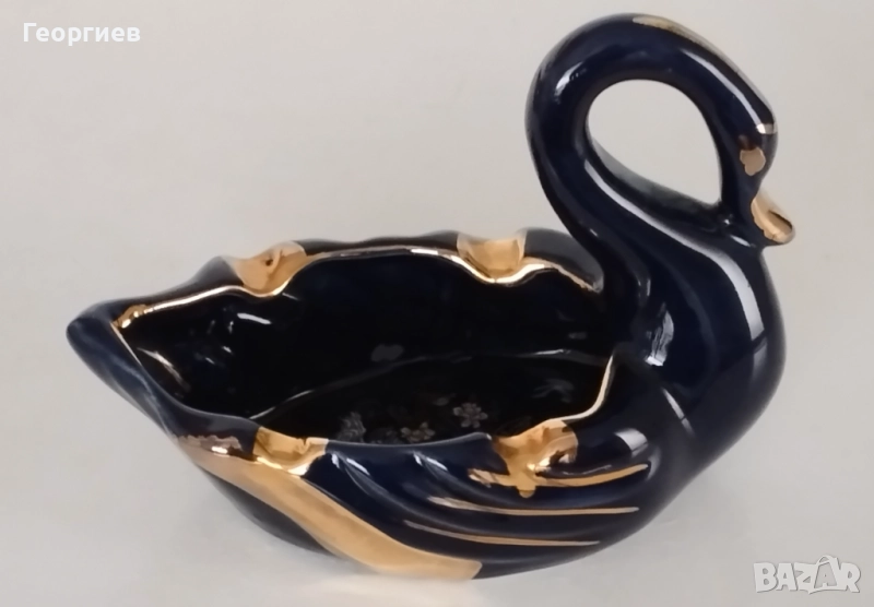 1.Порцеланов пепелник с кобалтово син цвят с позлата-€18