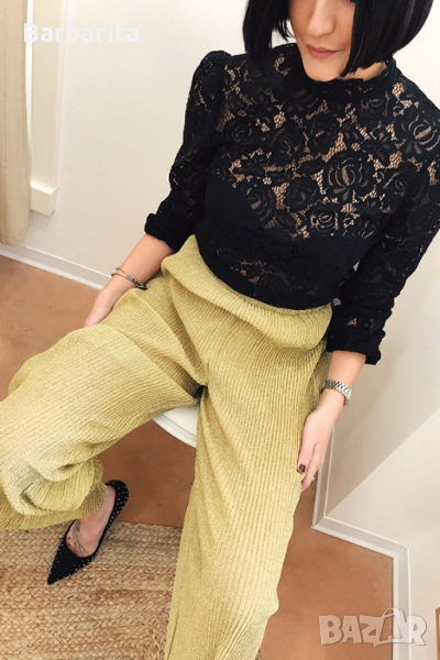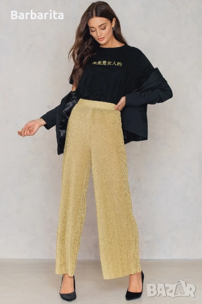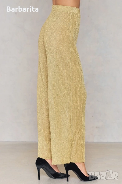 Златист плисиран панталон.Не е обличан никога.Размер М/38.