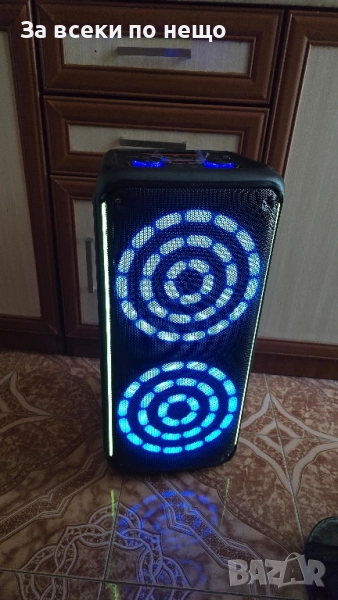Продавам караоке система, много силна и става за партита. Много яко свети! Със всички екстри. Мощността е 2 × 40 + 20 W bass. Има Bluetooth / UBS/ TF/ TWS, GB Light. Двойни 8 инчови, 3000 Mah. USB заряден кабел. Има жичен и без жичен микрофон, и дистанционно.