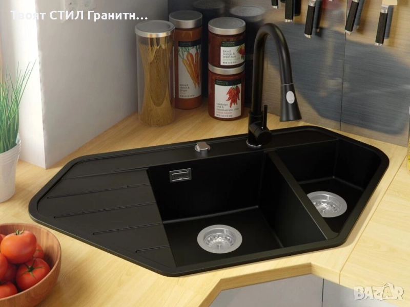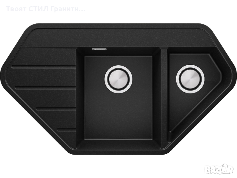 Черна ъглова гранитна кухненска мивка Копенхаген 900-70 – Интелигентен ъглов дизайн за максимален комфорт