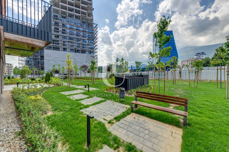 Жилището гледа към озеленен вътрешен двор и в далечина към планина Витоша, осигурявайки спокойствие и красива панорама. Сградата е част от комплекс с акт 16, който предлага на жителите си разнообразни удобства магазини, кафене, салон за красота, йога студио и други търговски обекти. Има възможност за покупка на подземно паркомясто или гараж.