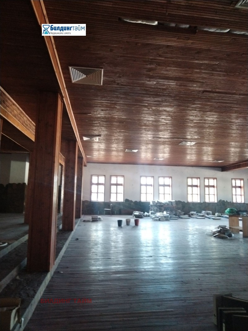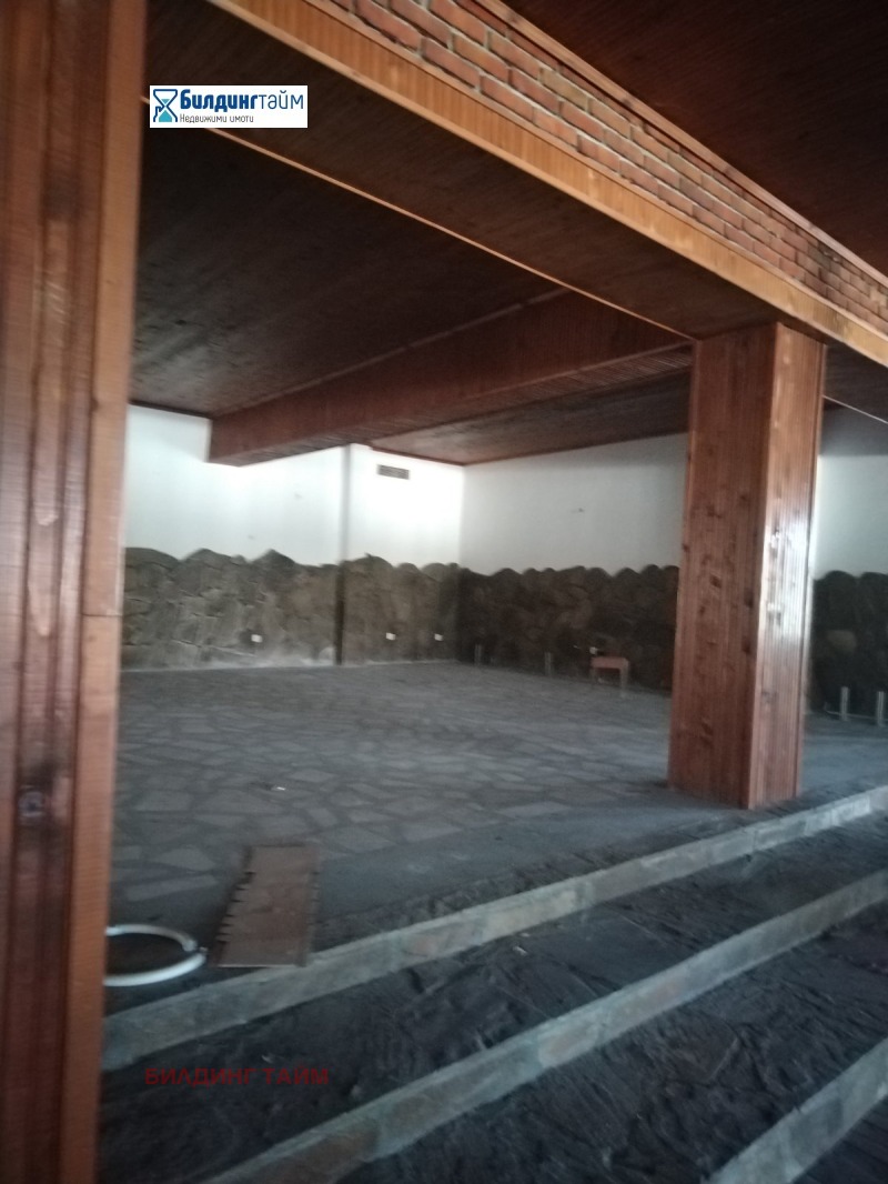 Помещенията се отдават заедно или само това от 400 кв.м. Помещението от 400 кв.м. е с дървен под и облицован с дърво таван. Помещението от 90 кв.м. е с под циментова мозайка и облицован с дърво таван. Сградата е масивна.