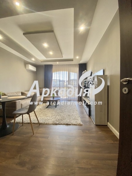 Предлага се завършен с висок клас довършителни материали- паркет, гранитогрес, вътрешни, интериорна мазилка на стените, вътрешни интериорни врати. Мебелите са чисто нови. Включва всичко необходимо за нанасяне веднага. Мека мебел с ниска холова маса, трапезарна маса със столове, поръчково кухненско обзавеждане с вградени електроуреди, спален комплект,