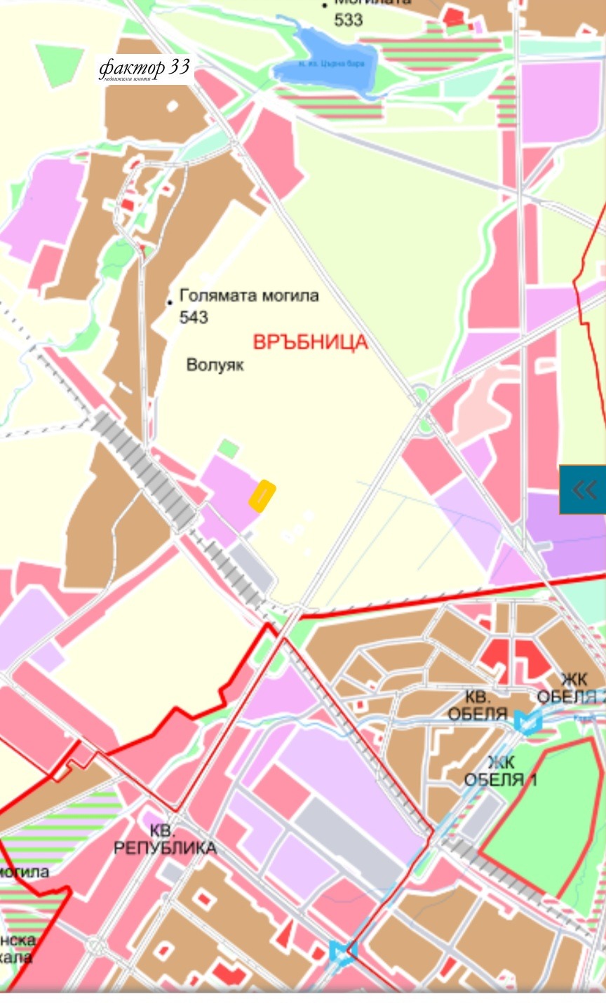 ТОПМЯСТО до ОКОЛОВРЪСТЕН ПЪТ, равен имот, всички комуникации- ток, вода, канал, газ, целогодишен асфалтов достъп. Попада в устройствена зона ПМС с параметри на застрояване: плътност - 50%, кинт -1,5, мин.озеленяване- 30%. Идеален за складова база, офис сграда или предприятие. Подходящ за застрояване с производствени, складови, търговски, административни и обслужващи сгради, вкл. общежития за персонала в предприятия, магазини, заведения за обществено хранене и др. Парцелът се намира на територията на Столична община - район Връбница, в землището на Обеля, на границата на кв.Обеля и с.Волуяк, с перфектен бърз достъп до Околовръстен път, бул.Ломско шосе, Обелски път, бул. Европа, бул. Сливница, Северна скоростна тангента. Във финална фаза на процедура по регулация. Отличен имот с инвестиционен потенциал.