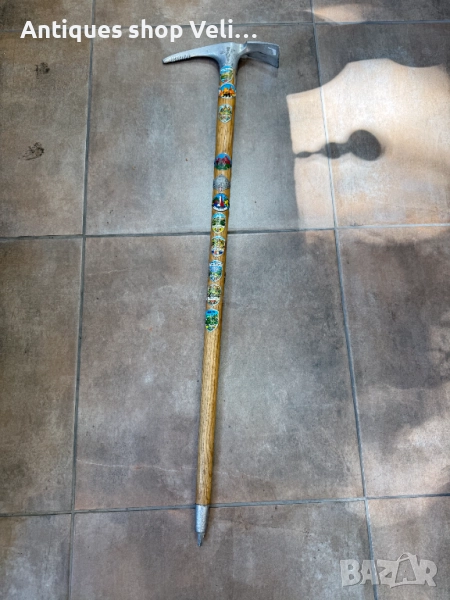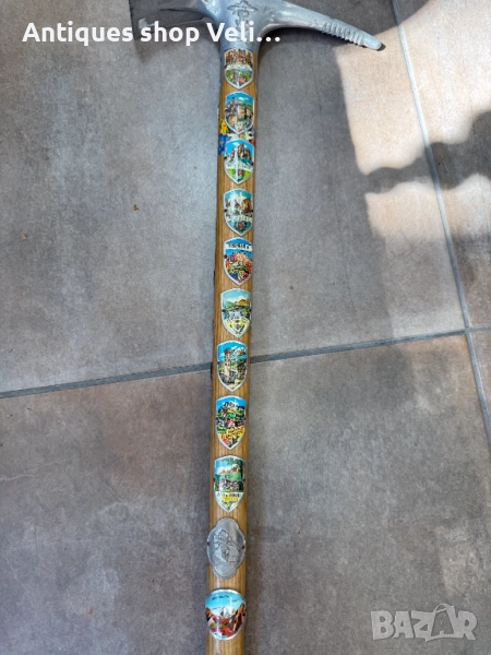 Тутистически пикел/бастун с много значки. Добро състояние. Предлагаме доставка с Еконт и лично предаване за градовете Велико Търново, Русе и Сливен! Дължина-89см.
