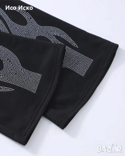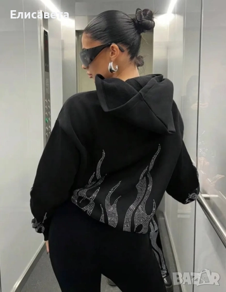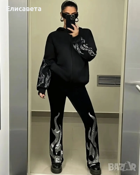 Дамски модерен екип подходящо за есента черен цвят с камъчета.