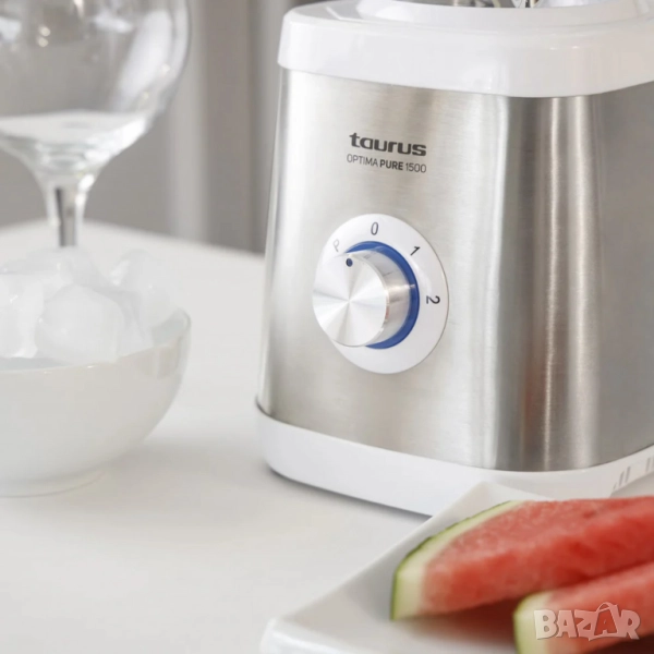 Блендер Taurus Optima Pure – 1500W мощност, 1,5L стъклена кана и ледосекач