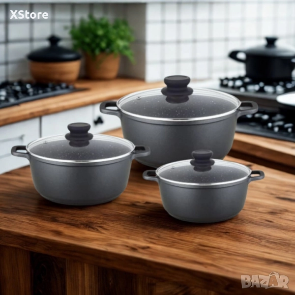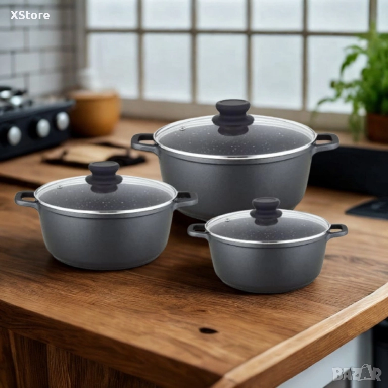 Брой части в комплекта: 6 (3 касероли + 3 капака);