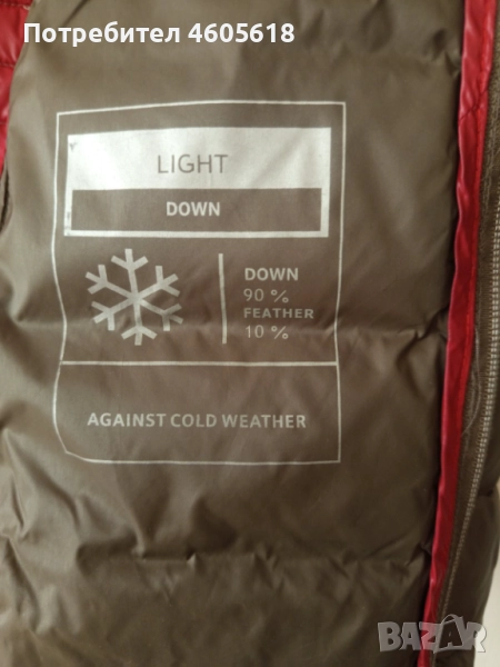 Олекотено яке с пух и пера, използвано, но в отлично състояние. Дължина 62см, ширина подмишници 50см, талия 45см Размер 40