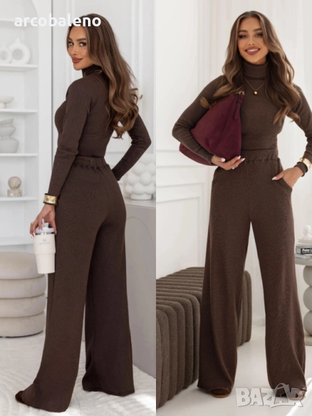 Комплектът от блуза и панталон с ребрена яка Carolann е олицетворение на есенния стил. Той съчетава простота, класа и комфорт, което го прави подходящ за много поводи. Непреходният му характер означава, че никога няма да излезе от мода.