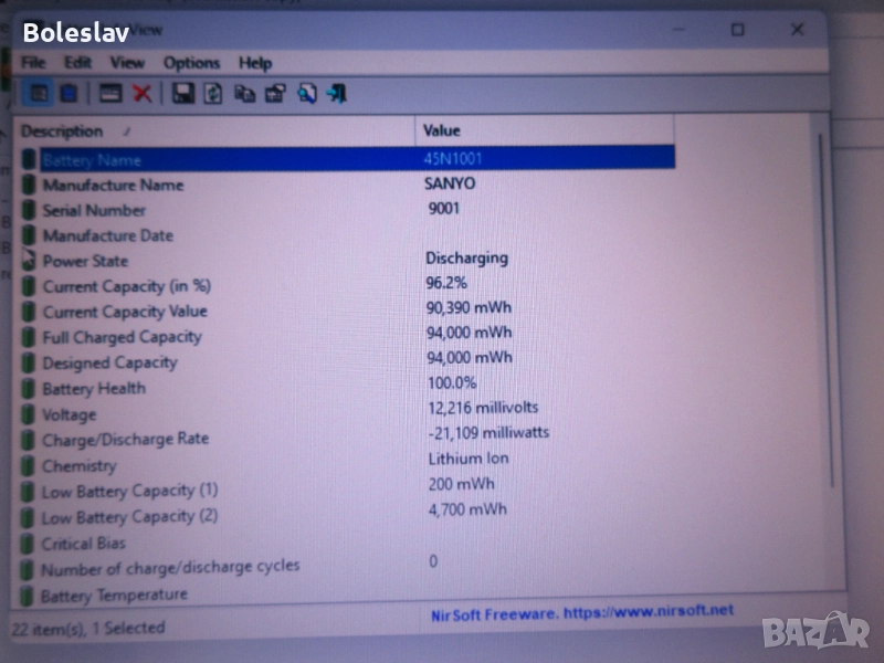 Батерия : чисто нова 9 клетъчна батерия на 1 цикъл и 100% здраве