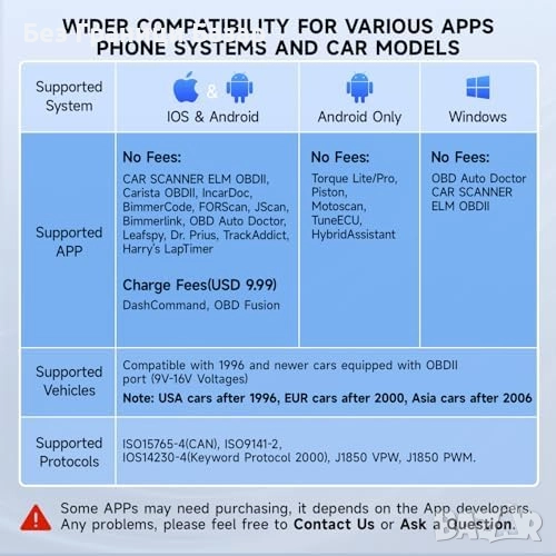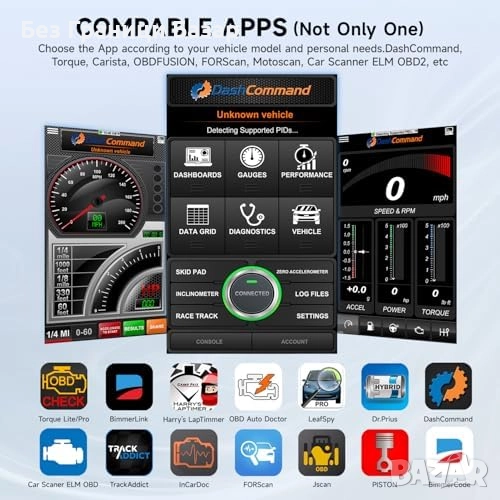 Поддръжка на водещи приложения – Torque, BimmerCode, FORScan, Motoscan, TuneECU