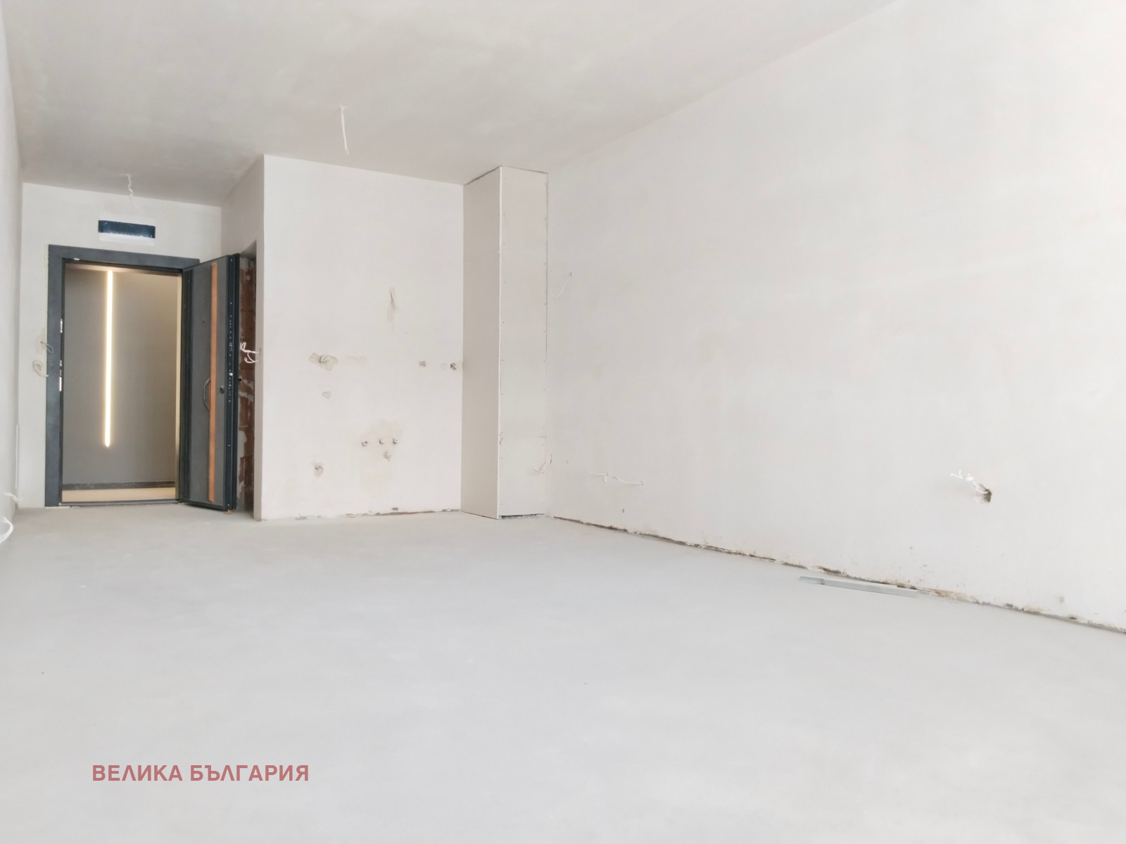 The listed price includes VAT, and the property is delivered with plastered walls and screed floors.