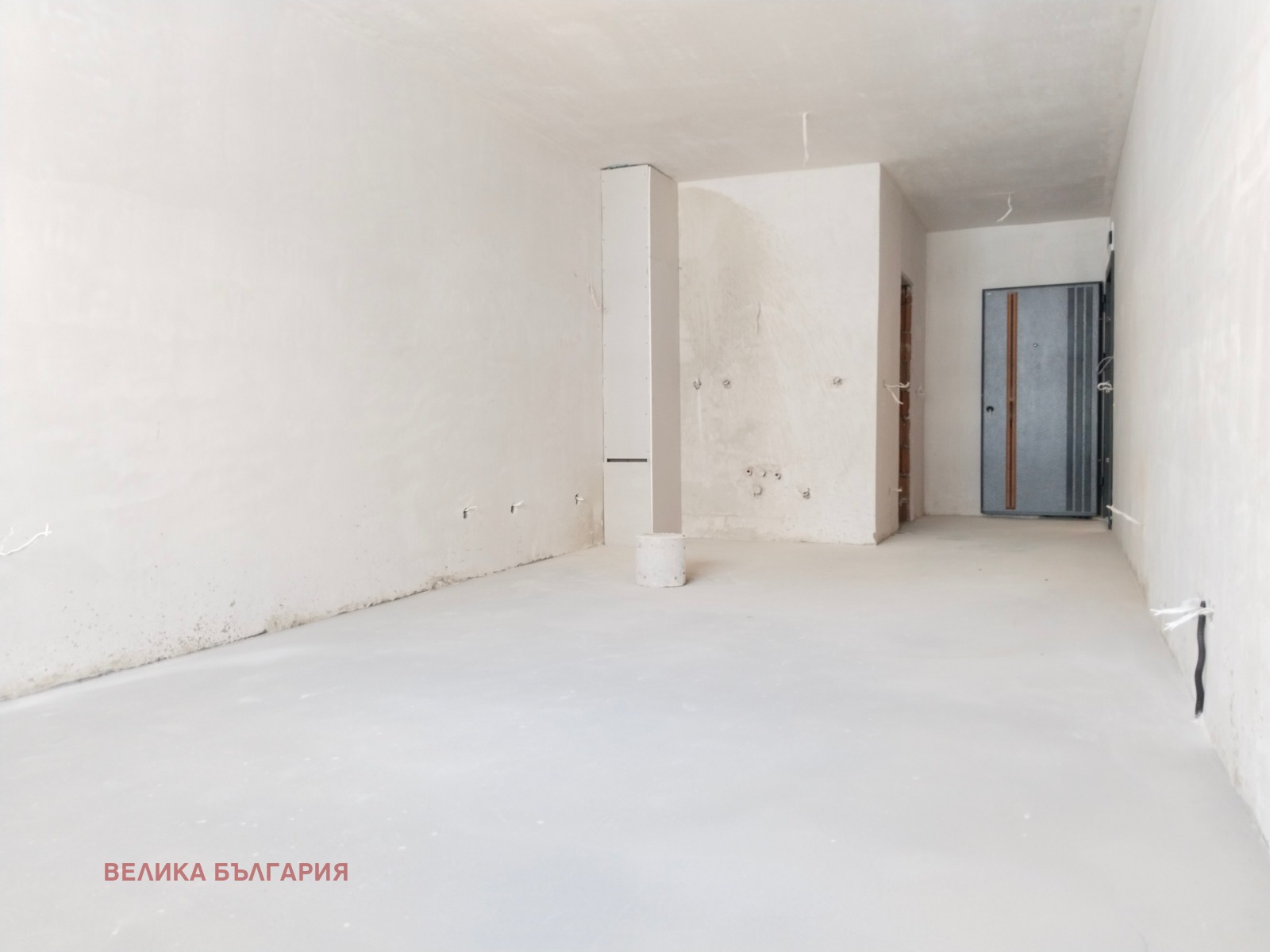 The listed price includes VAT, and the property is delivered with plastered walls and screed floors.