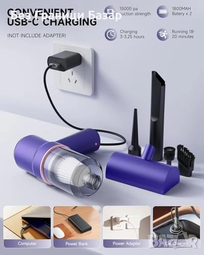 15000 Pa засмукване за прах, косми и трохи в кола и дом