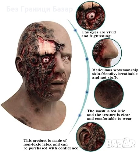 Нова Зомби маска с пълно покритие на главата за карнавал косплей Хелоуин и парти