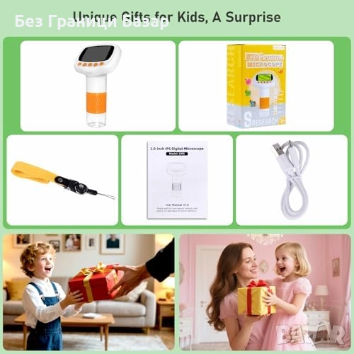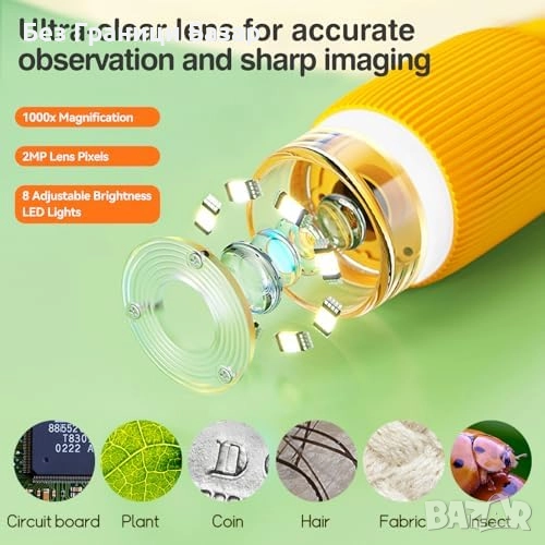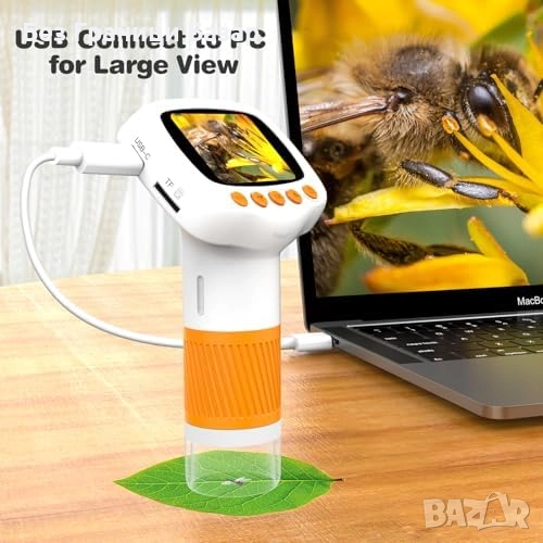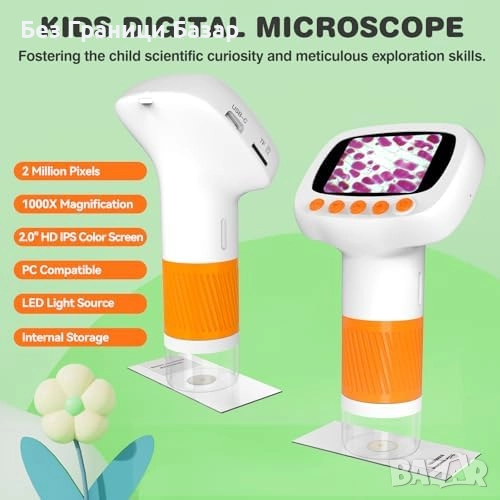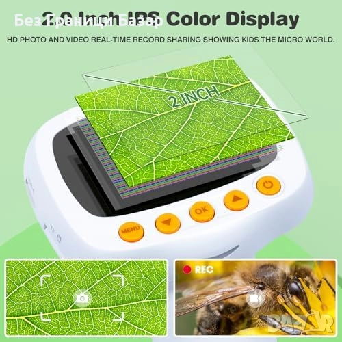 Джобен детски микроскоп с увеличение до 1000X и 2'' IPS екран