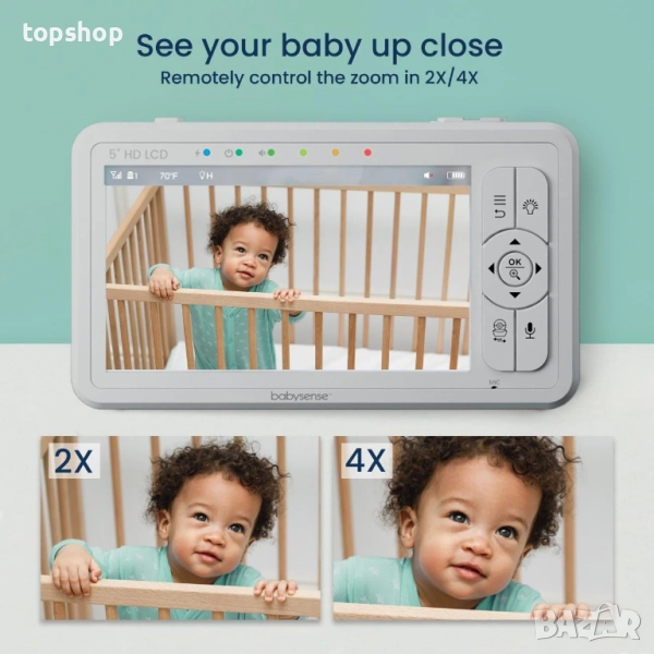 5-инчов HD 720p дисплей: Вижте бебето си с кристално ясни детайли за по-добро наблюдение.
