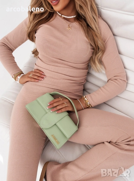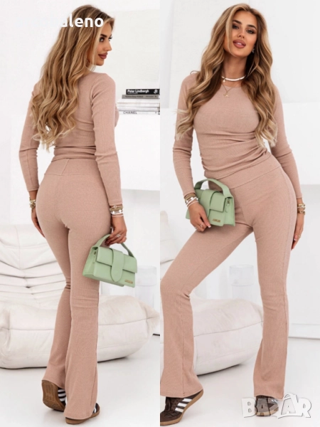 Комплектът от блуза и панталон Logan с оребрена прилепнала материя и мус е стилен вариант, който перфектно съчетава комфорт с женствена визия. Топлите, приглушени нюанси придават елегантност и финес, перфектно в съответствие с ежедневните модни тенденции. Този комплект е идеален както за уюта на дома, така и за града. Вталената кройка красиво подчертава фигурата, като същевременно осигурява комфорт през целия ден. Цялостната визия е модерна, но с нотка ретро благодарение на един модерен детайл – разкроените крачоли. Те добавят леко и спокойно усещане, създавайки тънка линия на краката. Оребрената структура на материала не само изглежда стилно, но и визуално оформя фигурата. Този комплект ще се съчетае добре с различни стилове – както спортни, така и по-женствени с елегантни аксесоари. Това е вариант за жени, които обичат да изглеждат добре без излишни усилия. Задължителен артикул за всички любители на удобното и модерно ежедневно облекло.