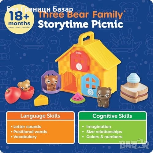 Игрови комплект за учене чрез забавление – трите мечета са готови за пикник и приключения.