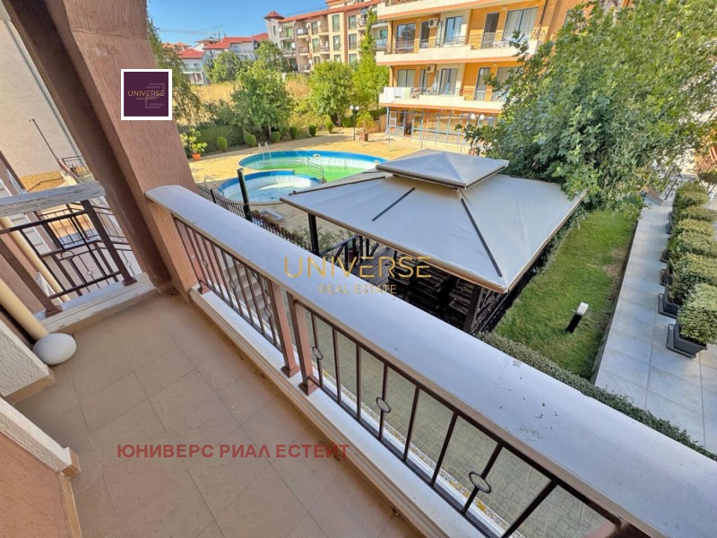 Този апартамент 2+1 се намира в луксозен комплекс в Свети Влас, близо до яхтеното пристанище Марина Диневи. Състои се от кухня/трапезария, 2 спални, 2 бани и тераса. Апартаментът е напълно обзаведен и оборудван. Комплексът е подходящ както за постоянно пребиваване, така и за почивка по всяко време на годината. Комплексът е охраняем и има видеонаблюдение. На територията му има басейн, бар, кафене, ресторант, детски басейн, тераси, детска площадка и магазин. На разположение е паркинг. Пясъчният плаж е на около 200 метра. Ресторанти, барове, супермаркети, салони за красота, спа центрове, увеселителни паркове и други са на пешеходно разстояние. Акт 16.#4971