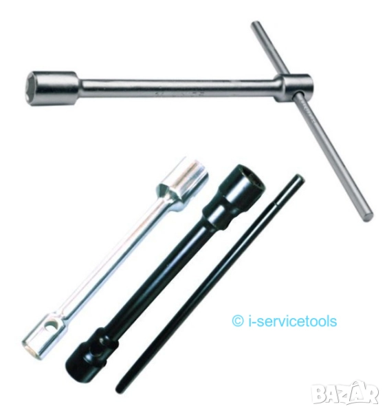 За ръчна употреба и с тръба удължение удължител - за задвижване на ключ за гуми джанти главини, тръбен отворен и глух, гаечен палцов (“пачи крак“), плъзгаща.глава-върток с присъединителен
