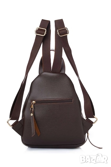 Характеристики Цвят: тъмнокафяв, светлокафяв Стил: ежедневен Материал: екологична кожа Принт: без принт Джобове: 2 с цип отвън Презрамки: регулируеми Дръжка: фиксирана Детайли: лого Закопчаване: цип Състав Външна част: 100% поливинил Размери Размери (см): 33 x 23 x 8 Код на продукта: 671LKB2128-945
