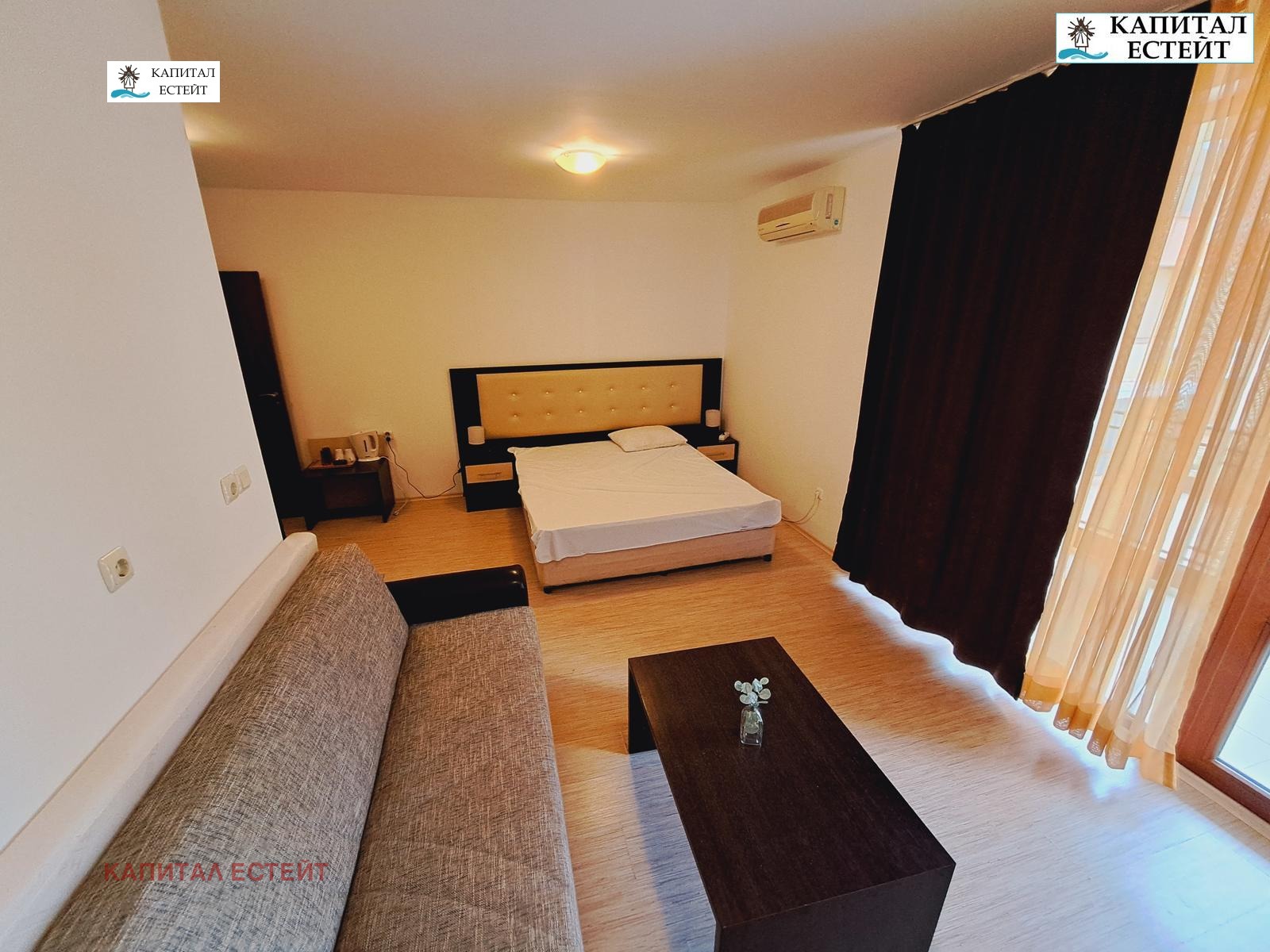 Готови документи за ИЗГОДНА СДЕЛКА! Агенция Капитал Естейт продава ексклузивно сграда с 12 едностайни апартамента на асфалтирана улица в южната част на Свети Влас, община Несебър. Разстояние до плажа: 308 метра. Сградата е част от ваканционен комплекс от затворен тип. Измежду удобствата в комплекса са басейн и място за слънчеви бани, домоуправител.