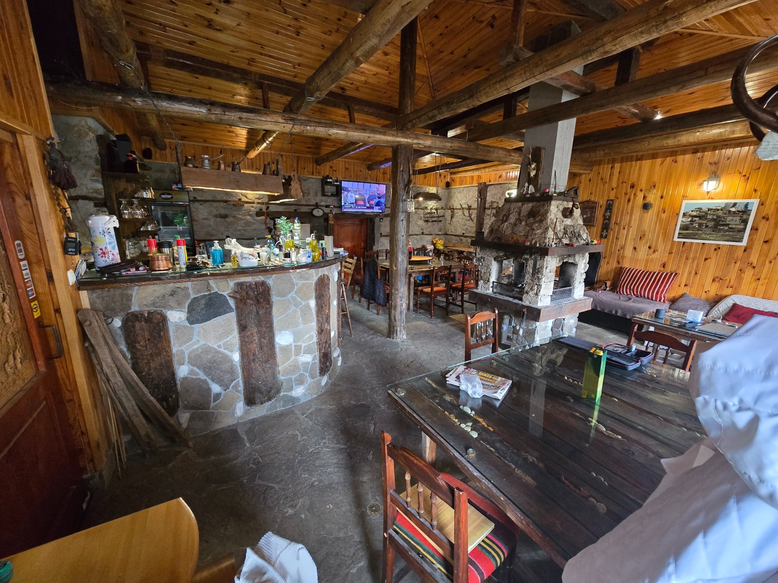 Първата сграда разполага с просторен апартамент на партерно ниво (вестибюл, две спални, баня, килер, перално), а на втория етаж обширна механа с открита камина, бар, кухня и високи тавани изключително подходяща за частни събития и гостоприемство. Втората сграда включва няколко стаи, всяка със собствена баня, както и апартамент с камина, баня и балкон с гледка. Двете сгради са свързани помежду си с голяма покрита тераса, под която се помещава сауна, както и просторна лятна кухня с пещ. Дворът е терасиран и аранжиран с декоративни зелени площи, цветни лехи, собствен извор с питейна вода, чешма и малко езерце. Отоплението е подсигурено с радиатори захранвани от котел на екопелети. Имотът е напълно обитаем и действащ, подходящ както за постоянно живеене, така и за развитие на бизнес с висок рейтинг в туризма. Покрива е изцяло подменен през 2023г. Достъп по асфалтов път проходим целогодишно. В близост до ски курорти, пещери, СПА комплекси всички условия за целогодишна заетост и добър приход