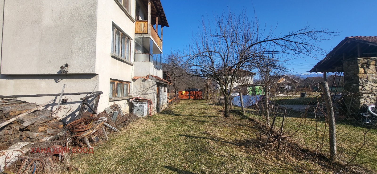 Дворът е отделен от улицата с голяма и малка порта, мрежа и е подходящ за отглеждане на малки деца и домашни любимци.