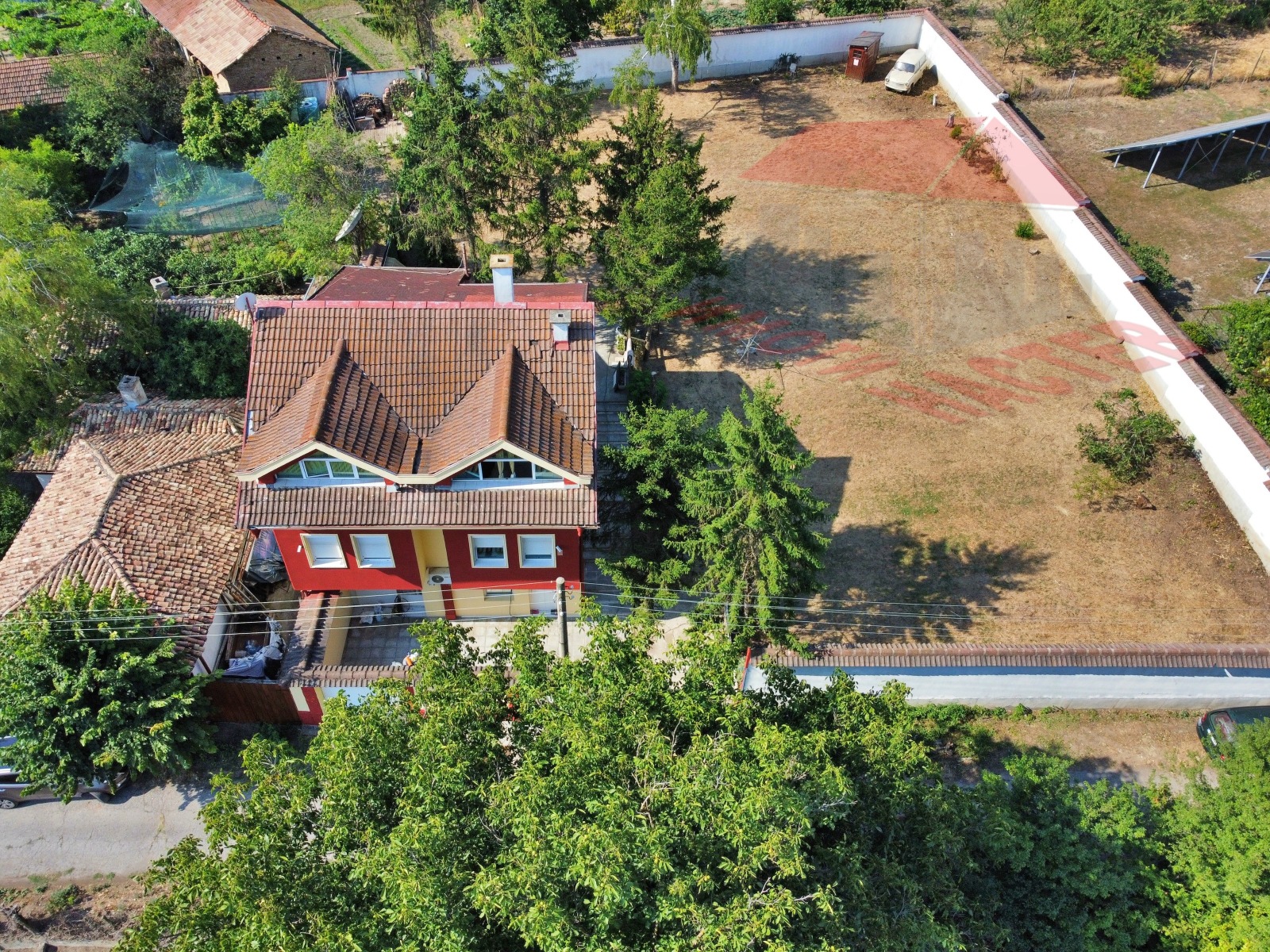 На първи етаж е ситуиран дневният тракт, кухнята и трапезарията. Всичко се помещава в едно голямо отворено помещение, с френски прозорци към двора и гледка към цялото село. По вътрешно стълбище се стига до вторият етаж, където са разположени две спални, баня с тоалетна и офис/трета спалня. Отоплението на къщата е решено с климатици и подово на ток.Има два котела със смарт управление от телефона, а системата е с АНТИФРИЗ вместо вода. При спиране на електричеството има система за автоматично поддържане, която включва генератор за ток. Единият е на дърва, вторият е нафтов. При строителството на къщата е вградена цистерна с обем 3,5 тона, с гърловина за пълнене от пътя. В гаражът има изградена система за вода с вместимост 1 тон, която при спиране на водата може да захрани цялата къща. Дворът е с вградена дифузьорна поливна система с промишлена вода и капково напояване. През лятото може да се построи летен къмпинг с палатка басейн, градинско осветление, шадраван; Оборудването е в наличност в гаража. Има и дървена къщичка за инструменти- косачки, храсторези, водоструйка, както и онлайн камери-видео 24 часа. Звънец с камера и електронно отключване на вратата.