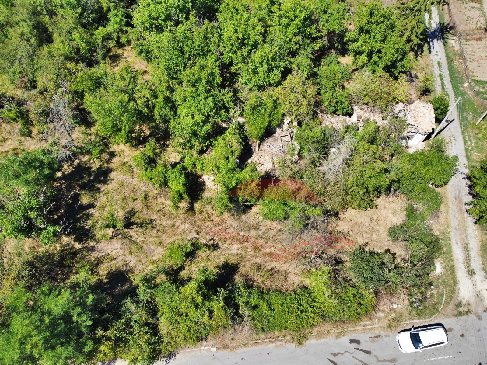 В парцела има изградени малка къща и стопански постройки, които са в много лошо състояние.