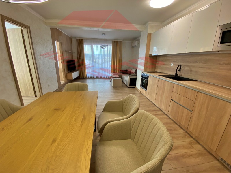 Жилището се състои от входно антре, голяма всекидневна с кухненска част, две уютни спални, баня с тоалетна и отделна тоалетна. Жилището разполага с голяма тераса, от която се открива чудесна гледка към целият град. В наемната цена има включено парко място.